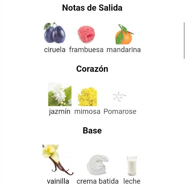 Las Notas de Fondo son vainilla, crema batida y leche.