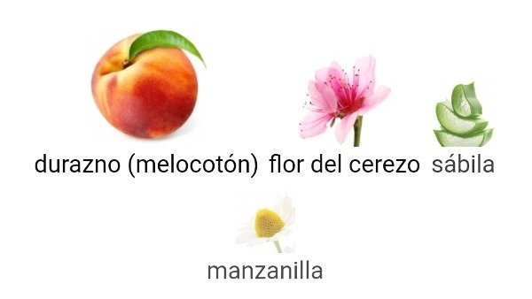 Durazno (melocotón), flor del cerezo, sábila, manzanilla.