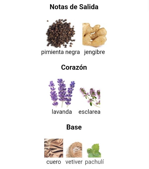 Las Notas de Fondo son cuero, vetiver y pachulí.