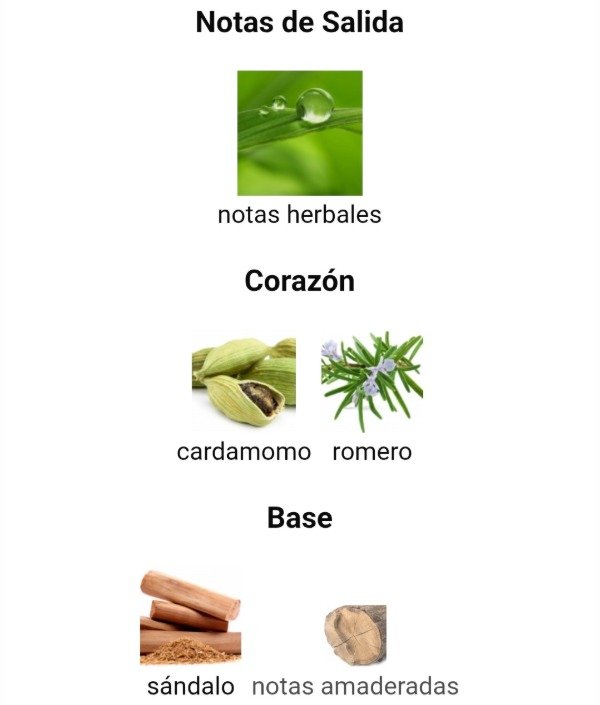 Las Notas de Fondo son sándalo y notas amaderadas.